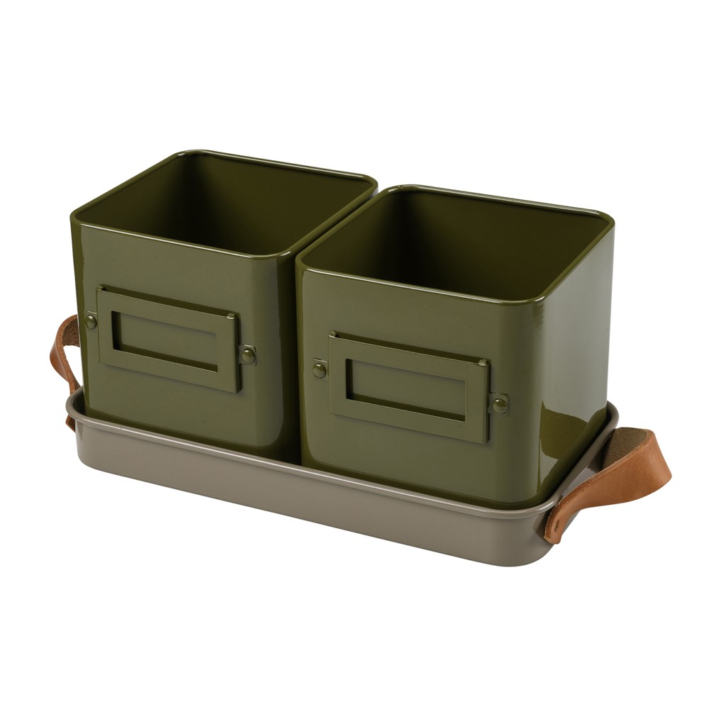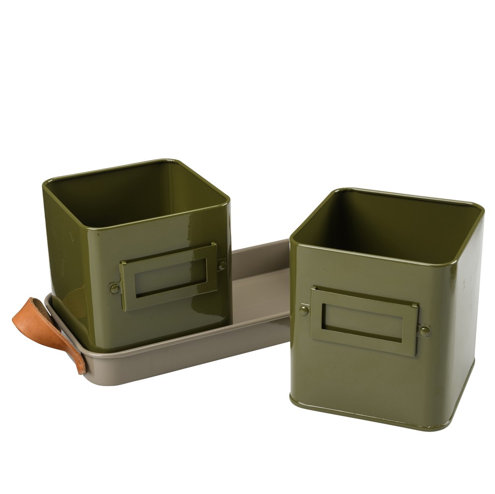 Kryddkrukor 2 st på fat - Oliv green Collection