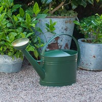 Dekorativ och rymlig 10 liters mossgrön vattenkanna i förzinkad plåt, som lackats i en fin färg, från GardenMind. Perfekt storlek när man vattnar i trädgården. Stril medföljer. Finns i flera färger