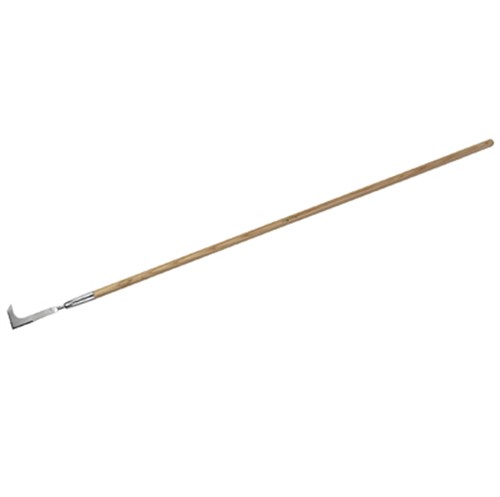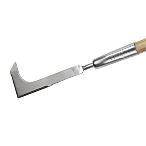 Bekvämt handtag i FSC-certifierat ädelträ. Smidig renskniv utvecklad för att komma åt i de smala springorna mellan stenar i stenläggningar. Finns även i kortskaftad variant: 7151-056. Dekorerad med elegant lädersnöre för smidig förvaring.