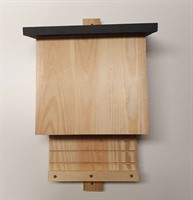 Holk anpassad för fladdermöss med ingångshål i botten. Räfflat innertak hjälper fladdermusen att få fäste när den hänger sig för att vila.