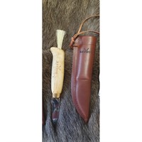 5 cm stålblad i anslutning träskaftet som är skickt limmat för extra hållbarhet. Till detta får man en ett hölster av renskinn berett utan kemikalier!