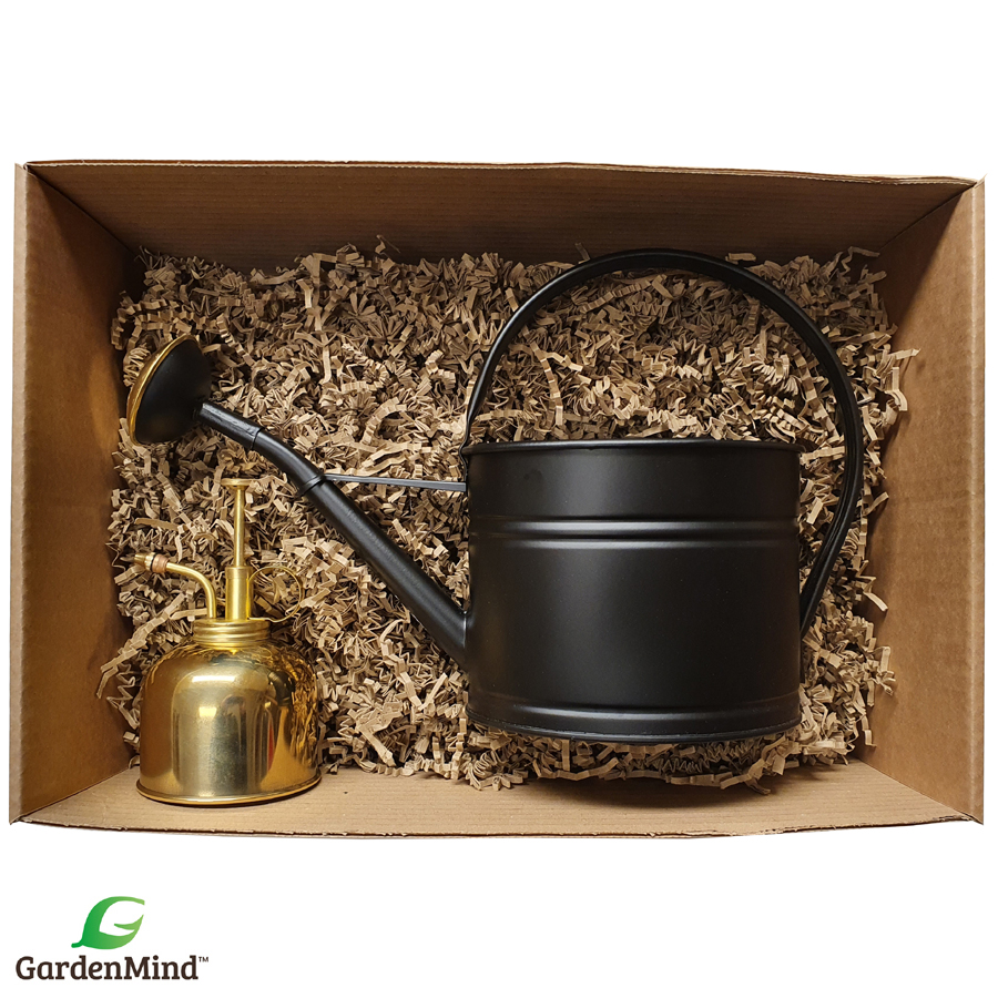 Set Svart vattenkanna 1,7l + mässing spray GardenMind