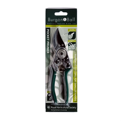 Kompakt minisekatör, från Burgon & Ball, som väger mindre än 150 g. Klipper grenar upp till 1,5 cm i diameter. Total längd: 17cm Lättöppnad med skönt grepp.