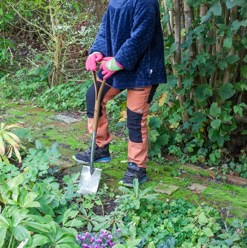 Riktigt fin och rejäl barnspade. Trähandtag i mörkbetsad odlad ask.God hållbarhet och ett gediget hantverk är en självklarhet hos Gardenmind.